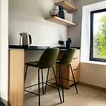 Calheta Suites - Vinha&Jardim - Adults-only suites met hottub&zeezicht villa beschikt over een koelkast, een oven en glaswerk in een ingerichte kitchenette om te koken.